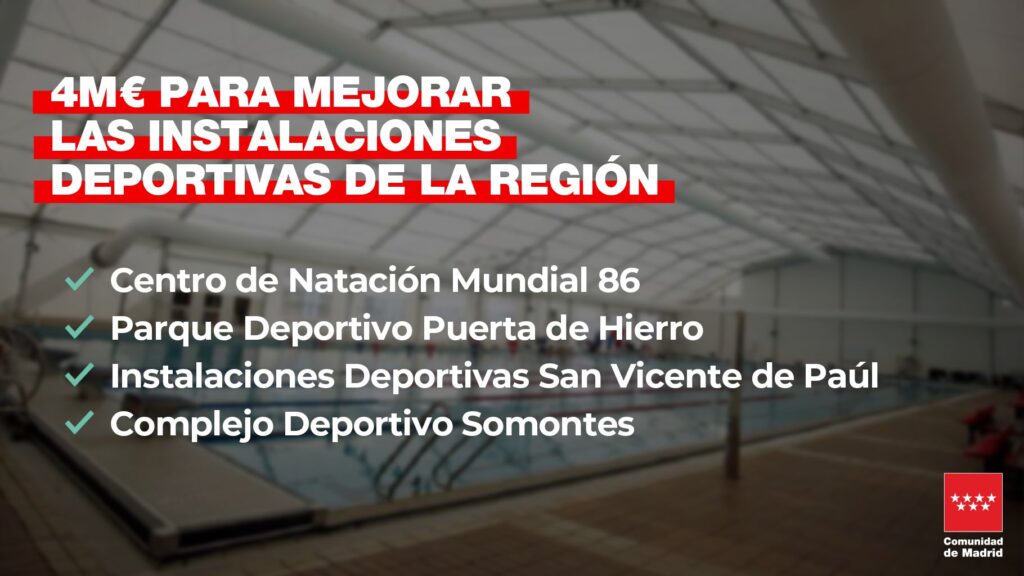La Comunidad de Madrid invierte 4 millones de euros en la mejora y modernización de instalaciones deportivas
